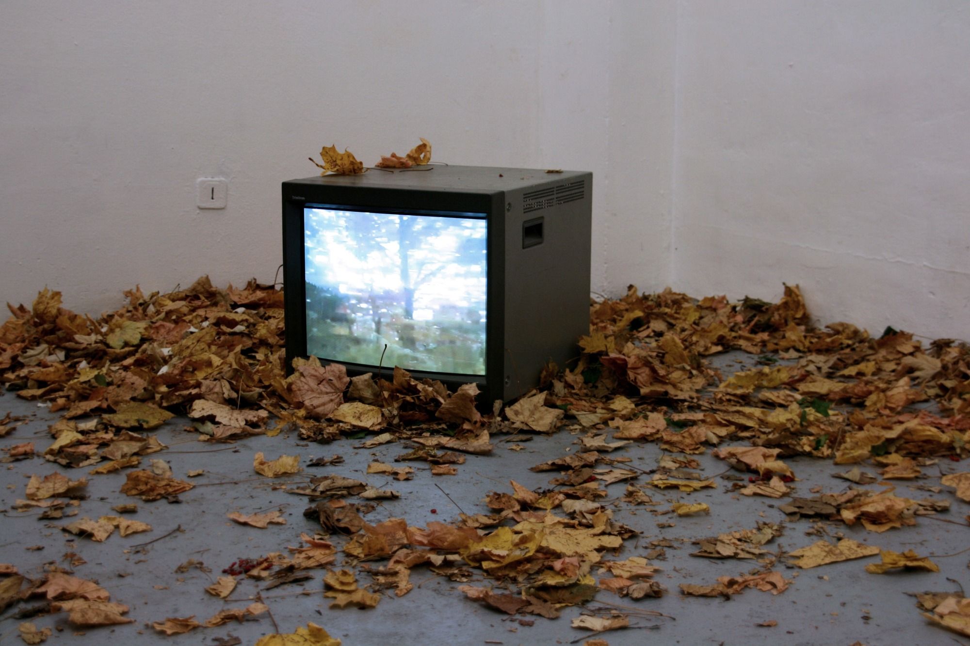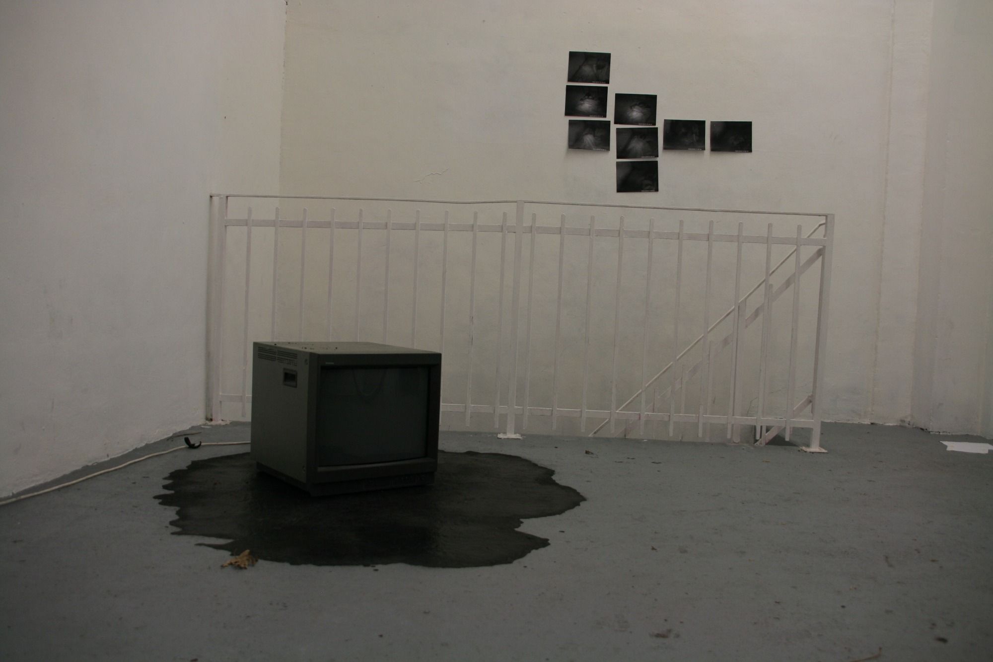 Téléviseurs d'un autre temps à l'obsolescence programmée. L'un est recouvert des feuilles d'automnes et diffuse une image mouvante et colorée. Le second semble avoir fondu sur le sol et repose dans une flaque noir dans laquelle une video filmé en négatif se reflète. Il symbolise les saisons de l'Automne et de l'hiver. Les photographies évoque le corps social, un questionnement identitaire, une énigme qui nous confronte aux regards des autres. Le corps se vit de l'intérieur, se danse, se tord, se ressent.