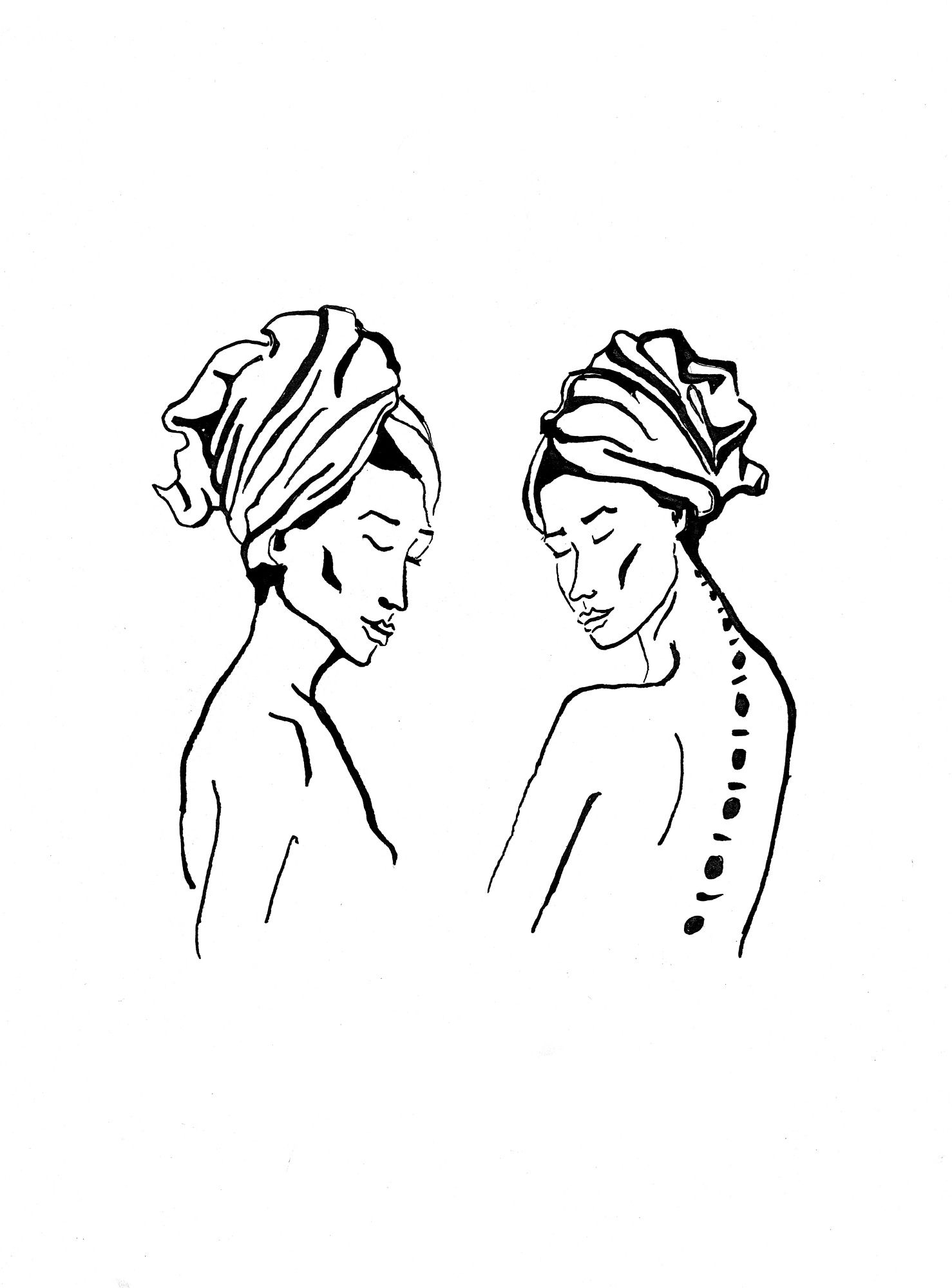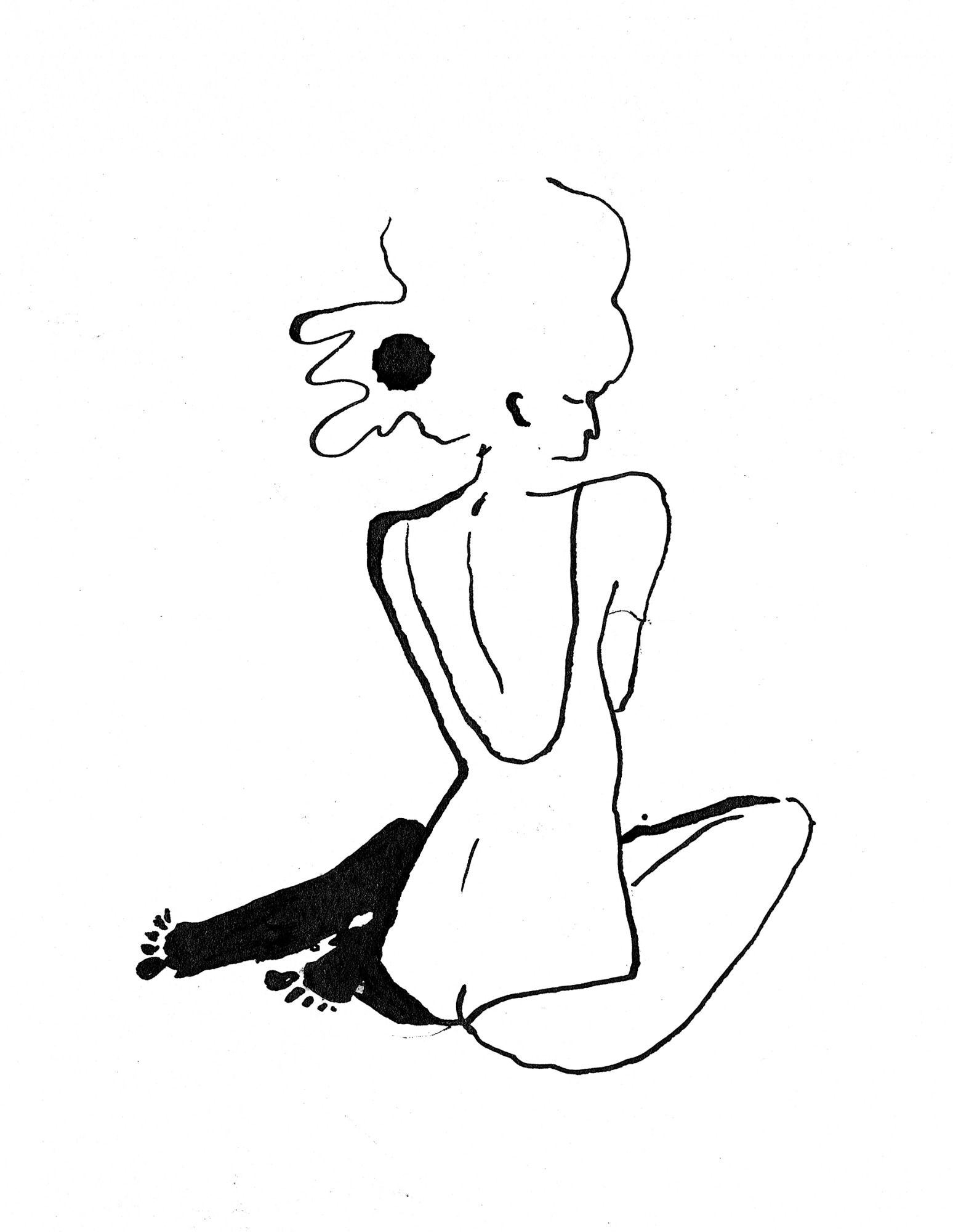 Le travail à l'encre noir se fait directement sur la feuille blanche, cela ne signifie pas que le geste est parfait mais qu'il est emplie d'humanité et les taches ornent le papier.